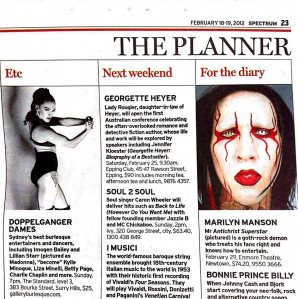 Sydney Morning Herald: SPECTRUM section. (For Madonna performance at “Doppelganger Dames”) |